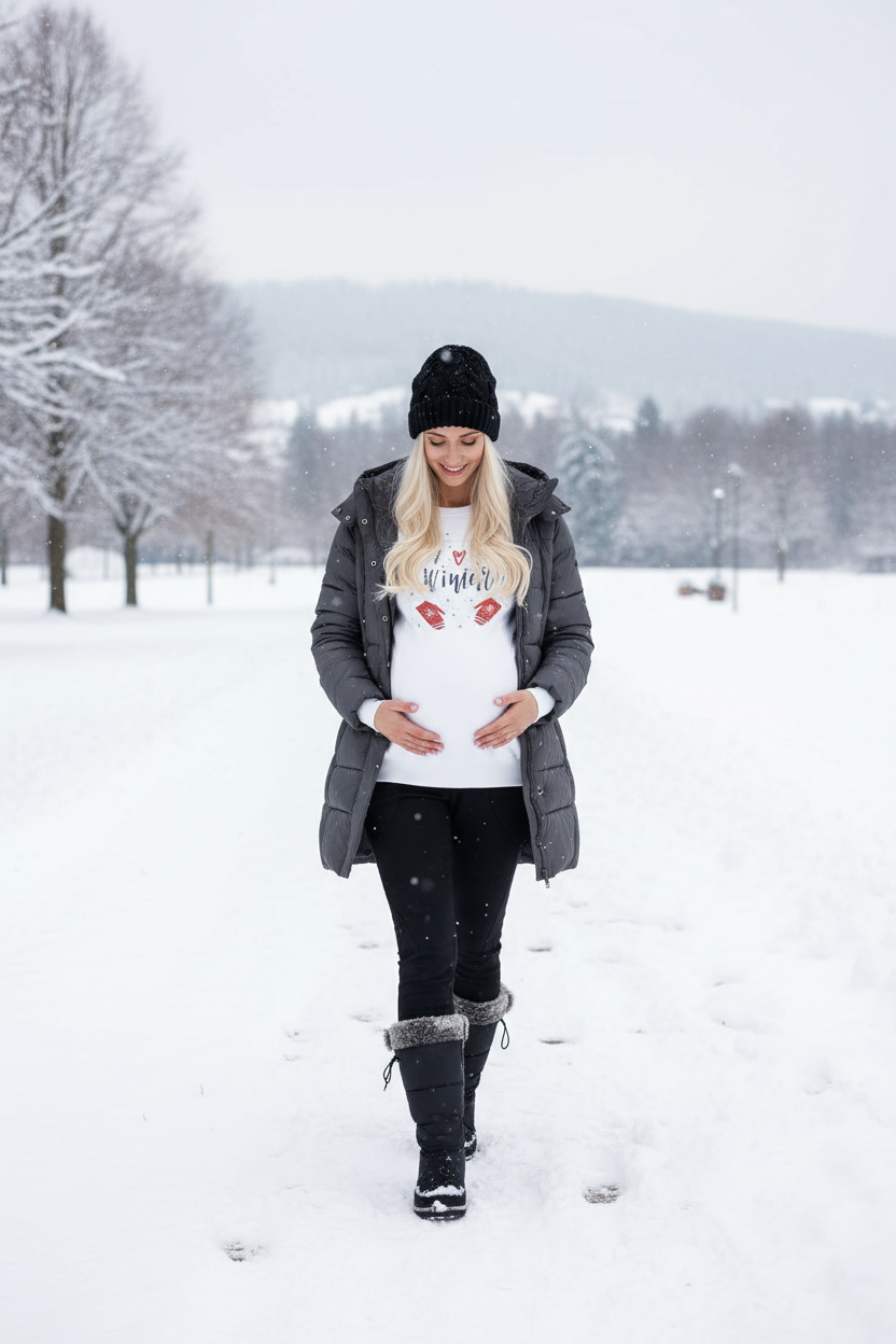 Незабываемый свитшот для беременных и кормящих мам из теплого трикотажа трехнитка с начесом и с ярким принтом «I love winter» - это великолепный подарок под елочку. Секрет кормления: потайные молнии в нагрудных рельефах. Он отлично подходит для фотосессий, но также это прекрасный выбор если вы отправляетесь на прогулку в парк или, например, в ресторан - восторженные взгляды окружающих обеспечены. Цвет: молочный