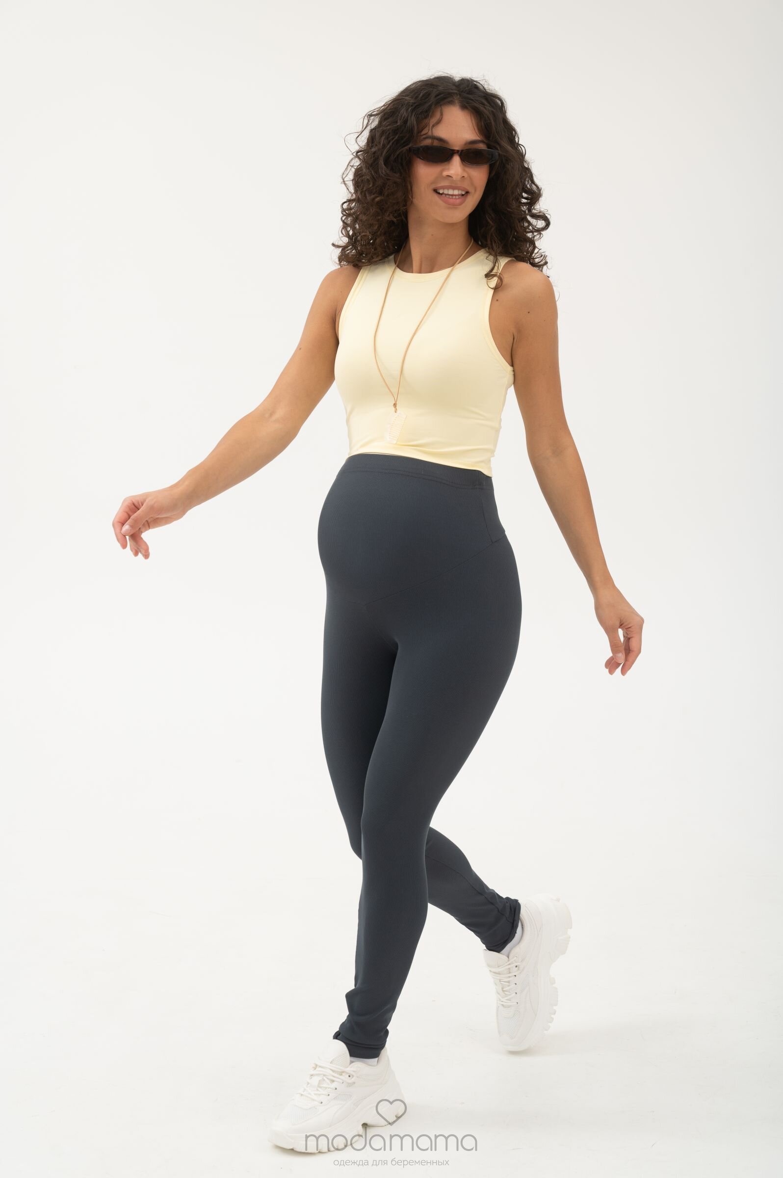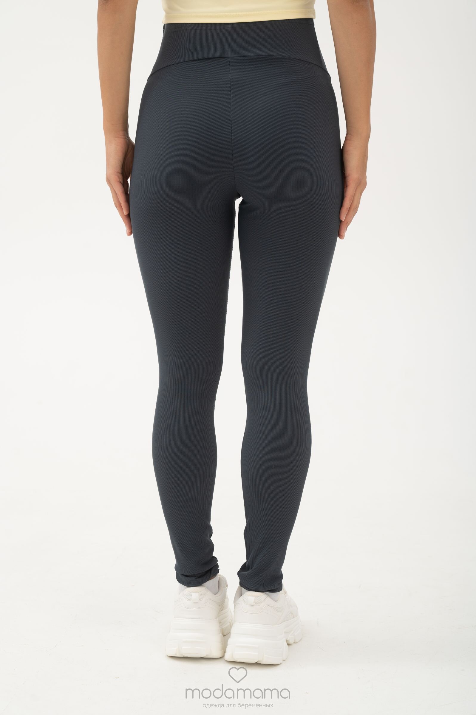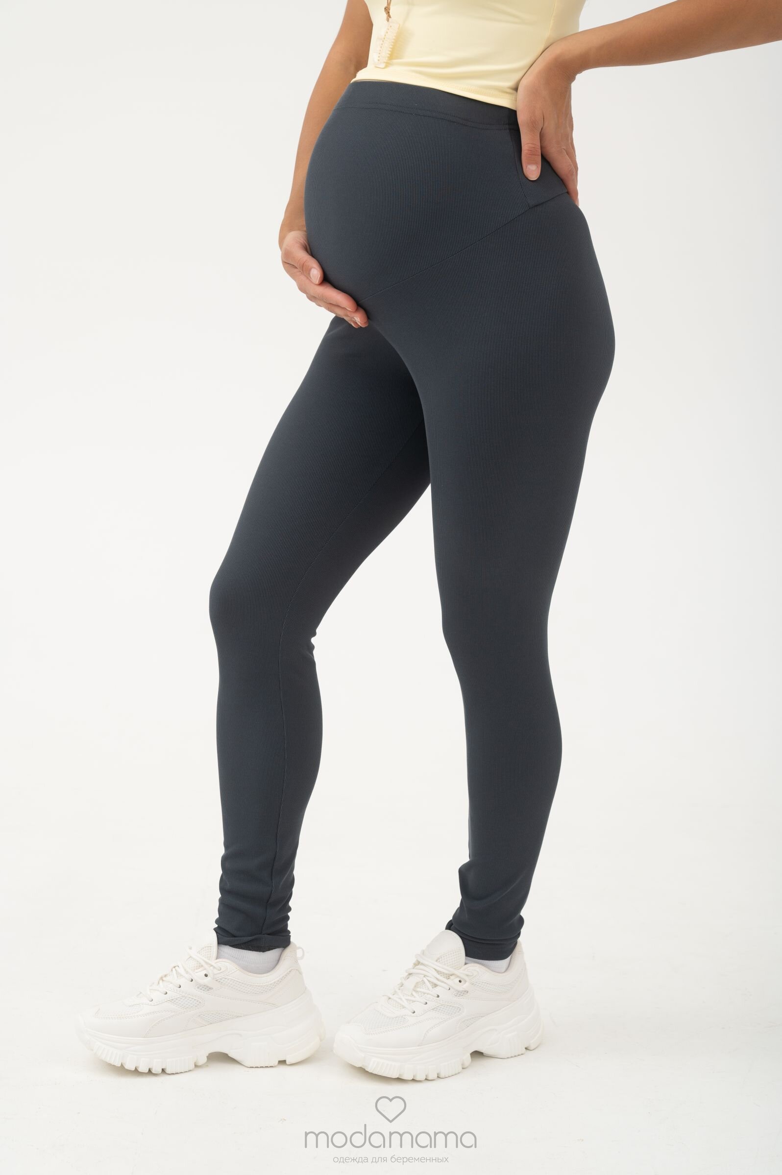 Леггинсы для беременных из тонкого, эластичного трикотажа-"лапша" с узким рубчиком. Хорошо держат форму. Высокий круговой трикотажный бандаж из основной ткани регулируется пуговкой сверху.