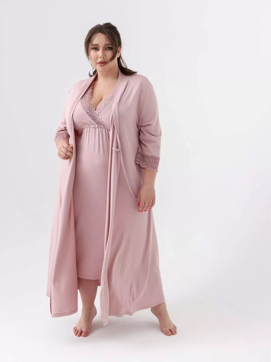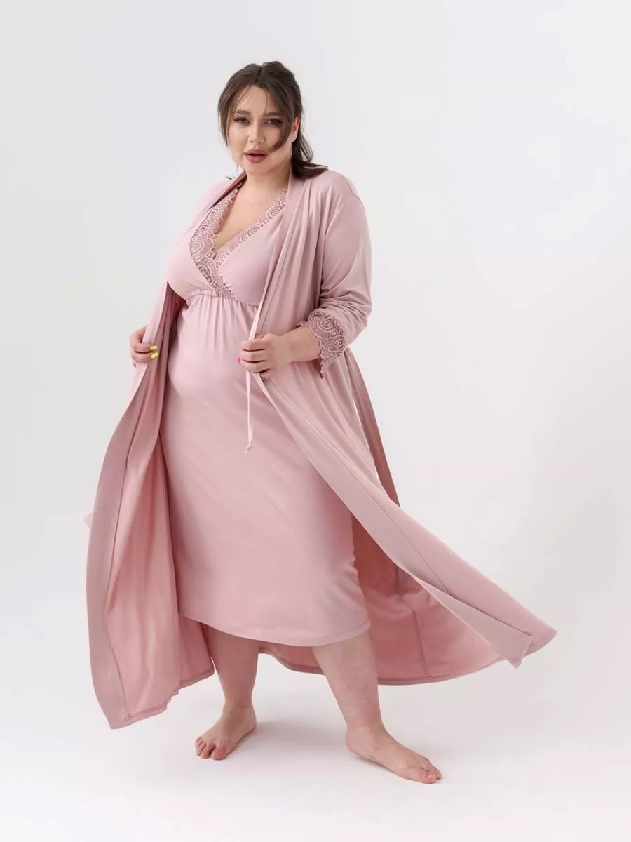 Этот женская костюм двойка для женщин plus size включает в себя халат и сорочку, идеально подходящие для периода беременности и кормления малыша. Комплект создаст комфорт как для будущих мам, так и для женщин послеродового периода. Халат из мягкого трикотажа на завязках с запахом аккуратно обхватывает живот, обеспечивая универсальность и лёгкость в использовании дома. Сорочка выполнена с учётом особенностей кормящих мам, предоставляя удобный доступ для кормления. Халатик прилегает нежно к телу, струящийся по фигуре благодаря вискозе высокого качества. Этот премиум текстиль мягкий, шелковистый на ощупь, что дарит дополнительное чувство комфорта. Длинный покрой добавляет образу элегантности и стиля даже в домашних условиях. В комплект большие размеры входит ночная сорочка — лёгкая женская одежда, которая подарит уют во время отдыха или сна и халат на поясе. Строгий и стильный дизайн позволят костюму стать незаменимым элементом гардероба каждой женщины в период беременности. Кружевные вставки добавляют нарядности пеньюару плюс сайз и создают романтическую атмосферу даже в повседневной жизни дома. Комплект предназначен также для использования в роддоме сразу после рождения малыша. Женское белье учитывает особые требования мам к ночным одеждам в этот важный период — она максимально функциональна и при этом эстетичнаЭтот женская костюм двойка для женщин plus size включает в себя халат и сорочку, идеально подходящие для периода беременности и кормления малыша. Комплект создаст комфорт как для будущих мам, так и для женщин послеродового периода. Халат из мягкого трикотажа на завязках с запахом аккуратно обхватывает живот, обеспечивая универсальность и лёгкость в использовании дома. Сорочка выполнена с учётом особенностей кормящих мам, предоставляя удобный доступ для кормления. Халатик прилегает нежно к телу, струящийся по фигуре благодаря вискозе высокого качества. Этот премиум текстиль мягкий, шелковистый на ощупь, что дарит дополнительное чувство комфорта. Длинный покрой добавляет образу элегантности и стиля даже в домашних условиях. В комплект большие размеры входит ночная сорочка — лёгкая женская одежда, которая подарит уют во время отдыха или сна и халат на поясе. Строгий и стильный дизайн позволят костюму стать незаменимым элементом гардероба каждой женщины в период беременности. Кружевные вставки добавляют нарядности пеньюару плюс сайз и создают романтическую атмосферу даже в повседневной жизни дома. Комплект предназначен также для использования в роддоме сразу после рождения малыша. Женское белье учитывает особые требования мам к ночным одеждам в этот важный период — она максимально функциональна и при этом эстетична