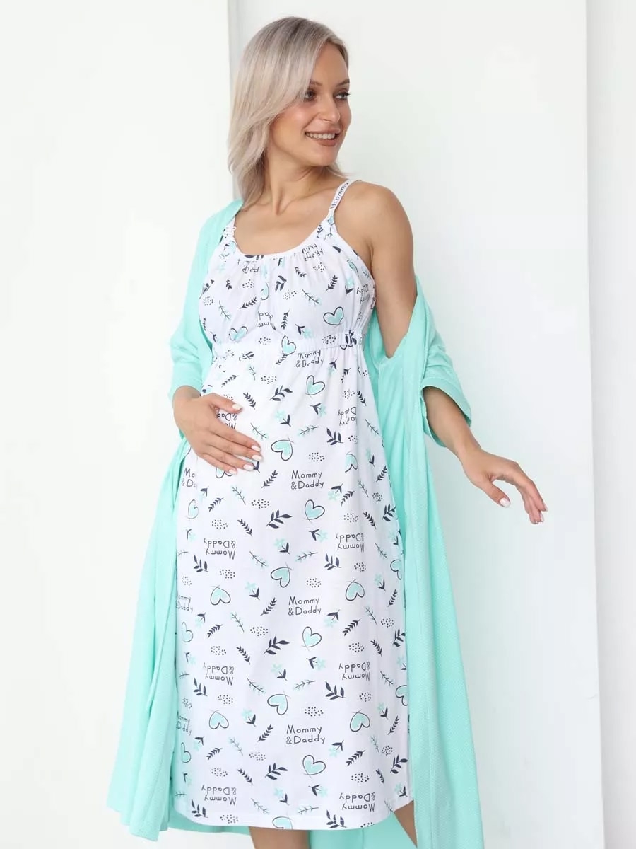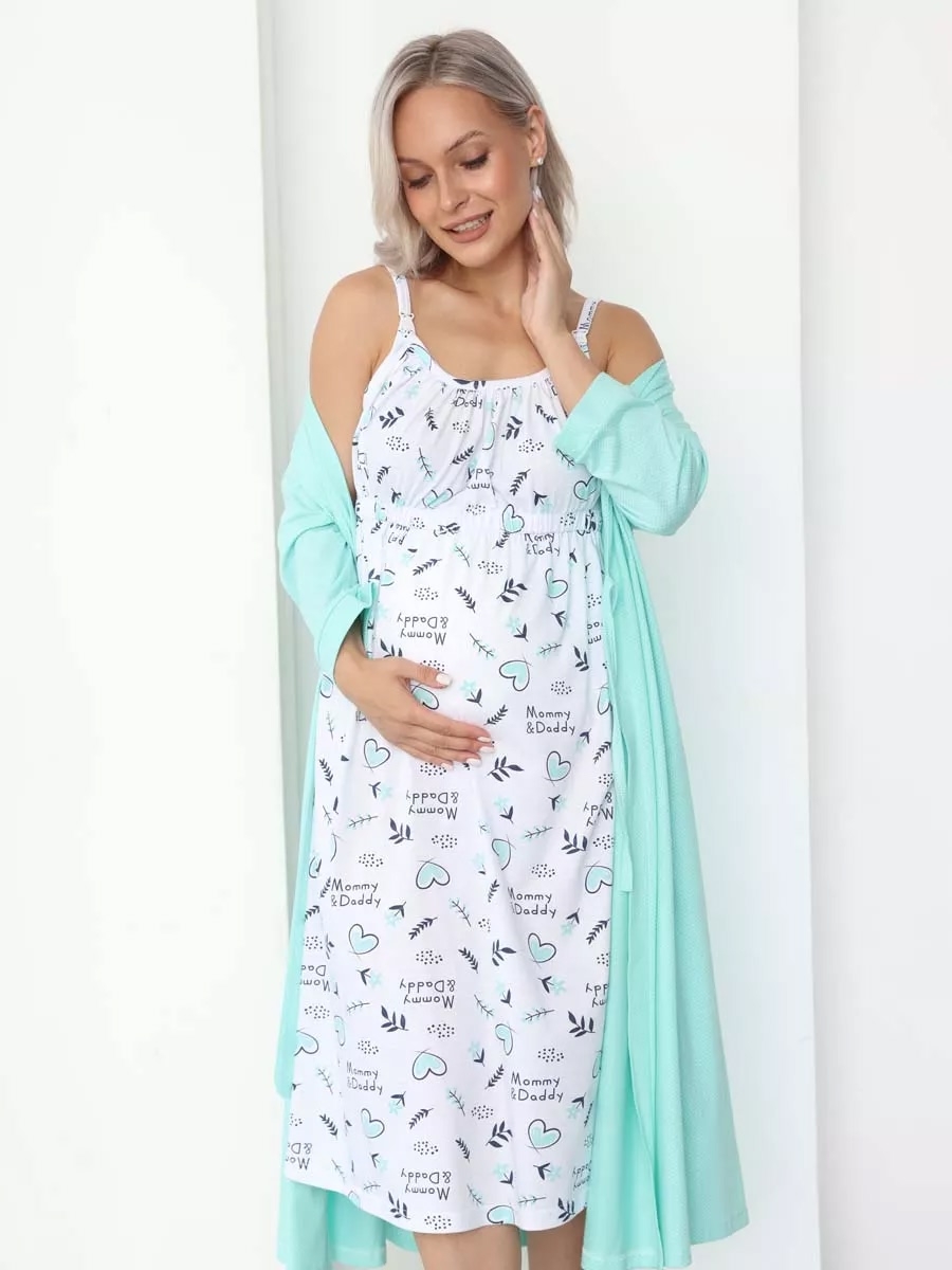 Набор двойка состоит из халатика и сорочки, подходит для ношения дома и в роддоме. Включает халат средней длины на запах, мягкий на ощупь, изготовленный из высококачественного трикотажа российского производства. Комплект сочетает в себе стиль и комфорт: уютная ночнушка на регулируемых бретелях облегчает кормление малыша, а легкий пеньюар добавляет нотку элегантности вашему повседневному образу. Беременность – особый период жизни каждой мамы, поэтому важно чувствовать себя удобно в любой ситуации. Этот костюм разработан специально для будущих и кормящих мам, обеспечивая свободу движения и комфорт на протяжении всех месяцев ожидания и после родов. Мягкая ткань трикотажного халата обладает отличной воздухопроницаемостью, делая его идеальным выбором для теплого летнего сезона. Рукава 3/4 создают ощущение легкости и комфорта даже в самые жаркие дни. Этот комплект в роддом особенно удобен при ежедневном ношении. Сорочка дополнена регулируемыми бретелями, что позволяет идеально подогнать ее по фигуре в зависимости от вашего состояния здоровья или настроения. Кроме того, мягкие швы не раздражают кожу, что немаловажно во время беременности.