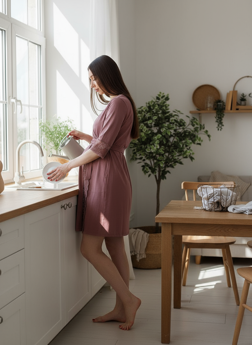 Пеньюар с халатом для беременных и кормящих женщин состоит из халата с поясом и сорочки. Пеньюар для беременных выполнен из хлопка самого высокого качества. Натуральный материал приятен к телу, не вызывает раздражения. Халат женский выполнен на запах, рукав три четверти, есть пояс и карманы. Ночная сорочка для беременных имеет отстегивающиеся бретели, что удобно для кормления малыша