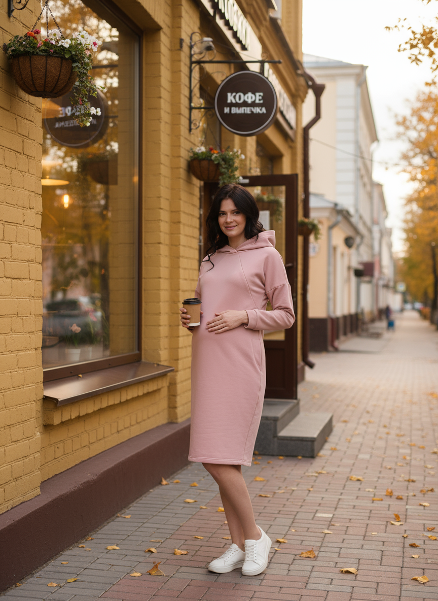 Платье для беременных и кормящих мам это уютное платье, которое позволит Вам выглядеть элегантно и нарядно каждый день, весной и осенью. Платье прямого анатомического кроя хорошо садится и подстраивается под изменения фигуры будущей мамы, легко корректирует недостатки и скрывает животик. Плюс платья для кормления грудью в сочетаемости с любым верхом и обувью, от спортивного до классического стиля. Платье с секретом для кормления стильное и практичное, его можно надеть на праздник или как платье для беременных на фотосессию. Стильное платье худи из хлопкового трикотажа футера 3-нитки без начеса. Универсальное платье подходит для беременных, кормящих, женщин с пышными формами.